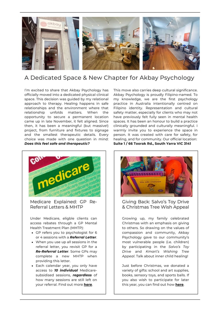 Akbay Psychology acknowledges the Traditional Owners of the land where we work and live, the Wurundjeri Woi-wurrung and Bunurong/Boon Wurrung peoples of the Kulin Nation, and pay our respects to Elders past, present, and emerging.